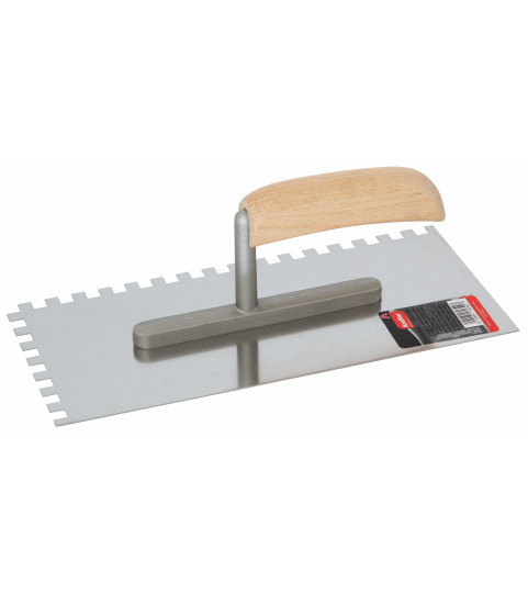 Hladítko nerezové zubové s dřevěnou ručkou 280x130x10x10mm.